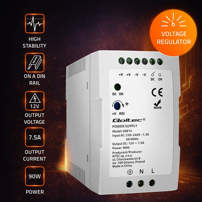 Qoltec DIN rail power supplies are a useful element of automation, machine control, lighting technology and industrial electronics systems, in which the size of power supply devices and their adaptation to limited space are important.