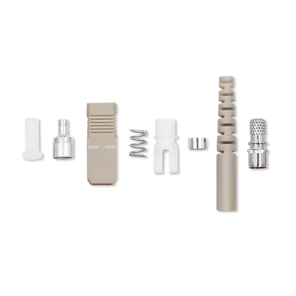 SC type fiber optic connectors are designed for terminating cables and fiber optic cables. Currently, one of the most popular fiber optic plugs. They are characterized by a "push-pull" snap mechanism that guarantees quick and easy connection and a reliable, permanent connection, and the correct placement of the SC type fiber optic plug in the adapter is signaled by a characteristic clicking sound. Used for single-mode and multimode transmission.