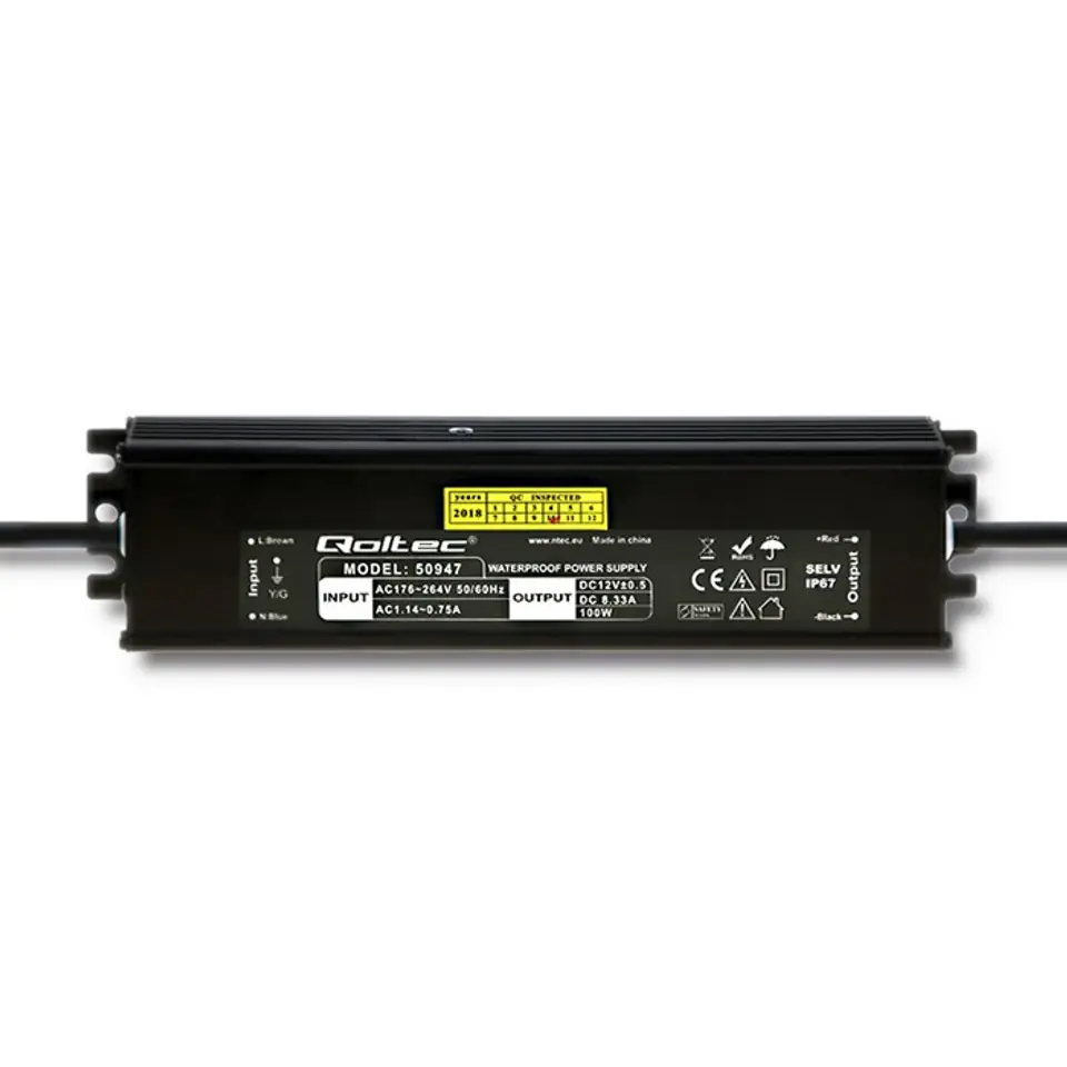 Qoltec LED Power Supply IP67 | 100W | 12V | 8.3A | Waterproof 0NC