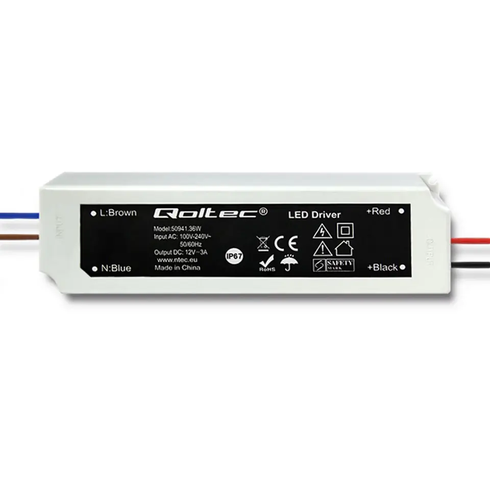 Qoltec LED Power Supply IP67 | 36W | 12V | 3A | Waterproof 0NC