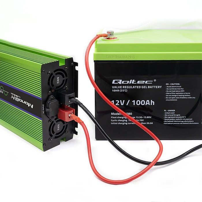 - 12 volt to 230 volt inverter, when connected to the battery, the inverter draws the necessary energy to power the connected device,
