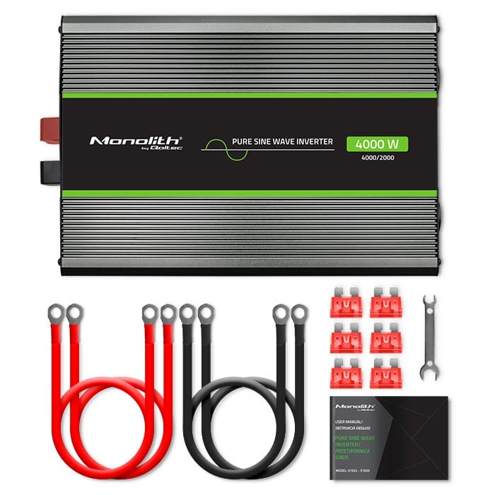 Pure sine wave inverterQoltec brand inverter is a pure sine wave, produces the same current as a 230V socket, ensuring safety for all connected devices. Great for both during power outages, as well as during travel when we do not have access to an outlet. When choosing a suitable inverter, it is worth paying attention to the power value and voltage of the battery, which must be consistent with that indicated on the inverter to ensure that our equipment has the right conditions for work. Also important is the number of connected devices, for example, connecting a laptop and a printer, the power of both devices should be added up. Remember that the power consumed by the connected device should not exceed 85% of the rated power of the inverter.Compatible with any type of power supplyThe product is ideal as a power source in campers or trailers during family trips. Are you planning a longer camping or lakeside vacation and looking for a way to plug in your laptop or charge your phone on the yacht? It is worthwhile to be well prepared. With a Qoltec brand inverter, you will be able to power your devices anywhere and enjoy convenience and comfort. The voltage converter will be the ideal power source for yacht and boat owners. This smart device will allow you to power your equipment during long trips away from home, it has a USB port and power outlets to which you can plug electrical devices. Without any obstacles, you can charge your phone, laptop or plug in any other device whose power does not exceed the power of the inverter. Devices up to 150W such as a smartphone or a laptop while traveling can be powered by the energy drawn from the cigarette lighter socket. For equipment with higher power, we recommend using a battery with parameters compatible with the inverter. Depending on the power consumed by the device, the inverter can power:RTV equipment: TV, game console, music equipment, radio,Household appliances: refrigerator, fridge,Office equipment: computers, printers, laptops,Other: power tools. The inverter can also be used not only on the go, but also as an emergency power source, such as backing up the CO furnace or to power equipment as a UPS during a temporary power outage from the power grid.Durable and lightweight housingThe case is designed from high quality aluminum that is resistant to shock and mechanical damage. It is an ideal choice for those who like to travel for long periods of time. Thanks to the inverter with built-in power socket, you can use almost any device that requires connection to the socket. The product has a USB port for charging mobile devices and a fan that takes care of proper cooling. Full guarantee for safe useThe product is equipped with a number of protections that guarantee full protection for connected devices. In addition, the kit includes a spare fuse to ensure the longest possible operation of the equipment.The converter has: