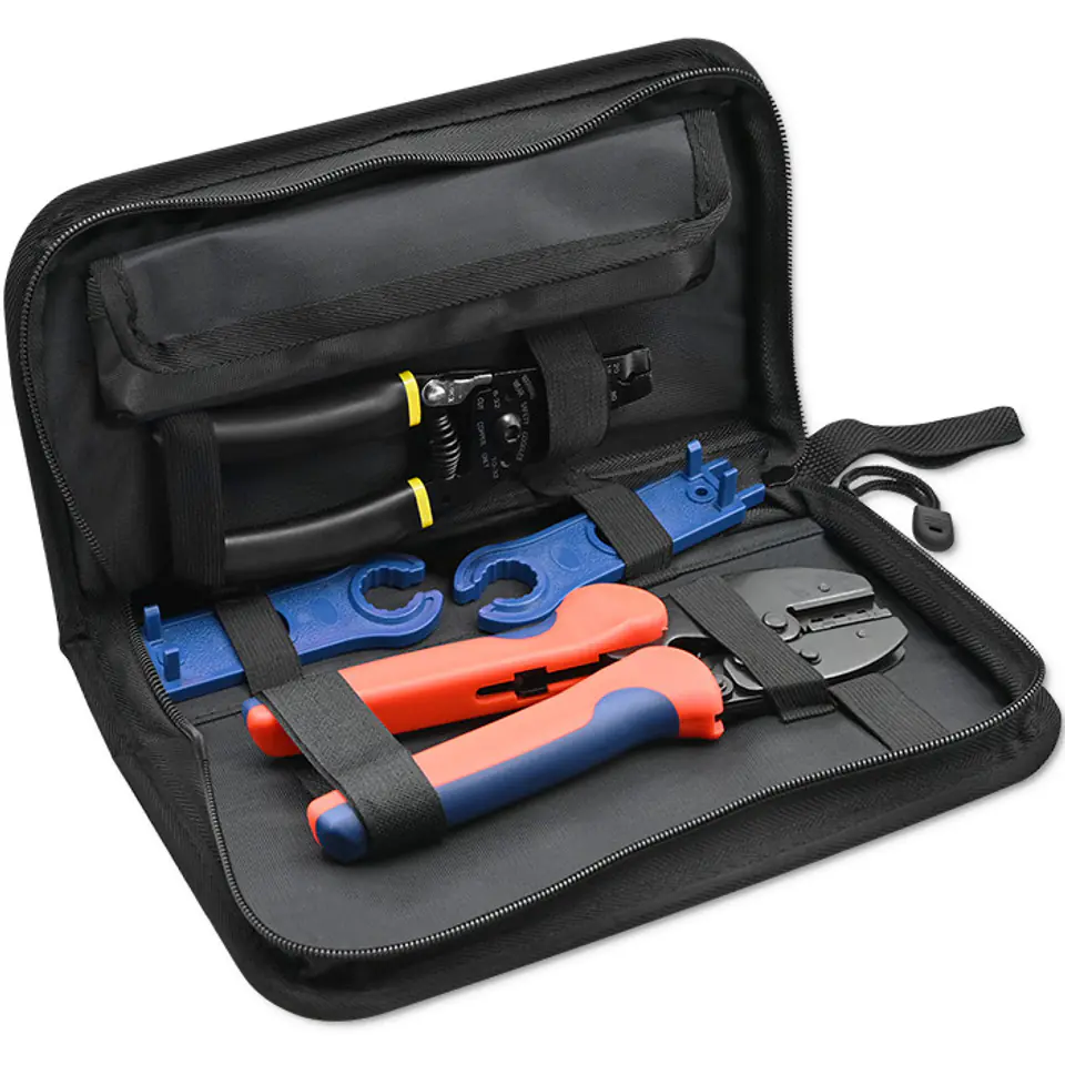 Ideal for PV professionals and beginnersThe practical solar tool storage case is sure to make it easier to carry your tools when assembling your solar installation and protect them from accidental and lost mechanical damage. All tools are compatible with MC4 connectors, allowing you to carry out all the work involved in assembling solar connectors and connecting wires to the photovoltaic installation. You will already be able to easily strip insulation from wires or cut cables and wires of different diameters. Everything you need to connect your solar panelsQoltec brand tools meet the highest standards of product quality and safety of use and the quality of the product influences the efficiency, accuracy and precision of the work performed. The tool set includes: