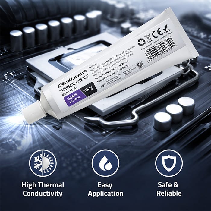 Qoltec thermal paste is a product of the highest quality, which offers:
