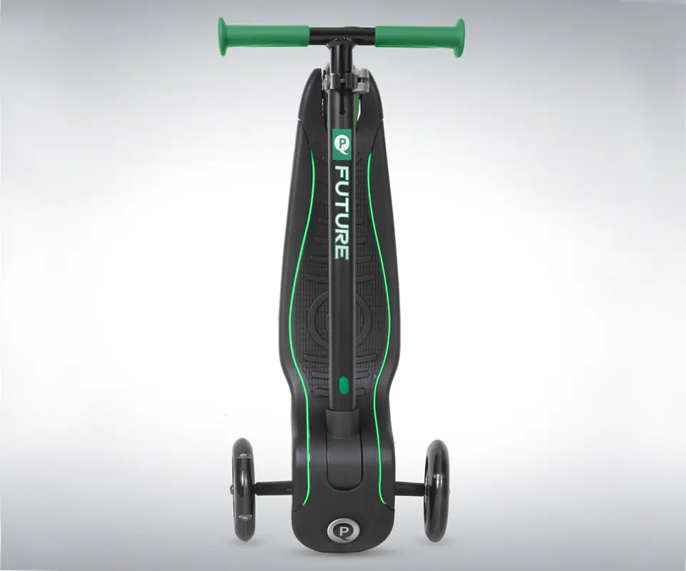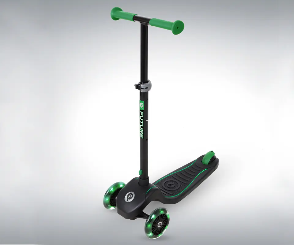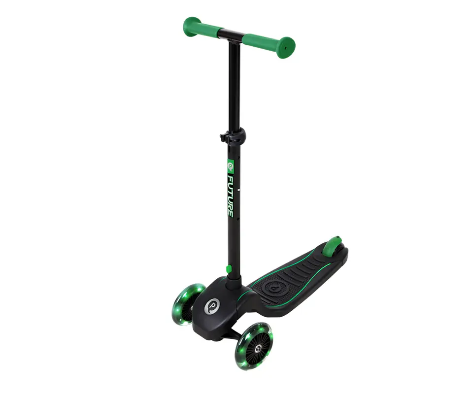 Qplay Hulajnoga Future ma elegancki design i zabawne funkcje świetlne, produkt idealny do przygody na świeżym powietrzu. Wybierz jeden z 3 trybów świecenia: blask, lampa błyskowa i szybka lampa błyskowa. Matowy czarny deck został zaprojektowany tak, aby twoje światła wyróżniały się, podest ma także specjalną teksturę antypoślizgową pod stopy. Ten 3-kołowy scooter pomaga i uczy dzieci znaleźć równowagę, dwa przednie koła z oświetleniem LED, co nadaje fajny futurystyczny wygląd. Kierownica ma regulowaną wysokość. W celu zatrzymania skutera, hulajnoga jest wyposażona w hamulec nożny. QPlay Hulajnoga Future ma innowacyjny, szybki system składania, świetnie sprawdzi się zarówno w domu jak i na wyjazdach – zajmuje mało miejsca. Lekka i solidna konstrukcja gwarantują bezpieczeństwo i wygodę użytkowania. Niewątpliwą zaletą jest regulowana kierownica, aby rosnąć wraz z dzieckiem.Hulajnoga ćwiczy motorykę, siłę i mięśnie nóg, oraz dba o koordynację ruchową. Dzięki temu dziecko będzie prawidłowo i szybko się rozwijało.Jednak jej najważniejszą zaletą jest frajda jaką dostarcza dzieciom.