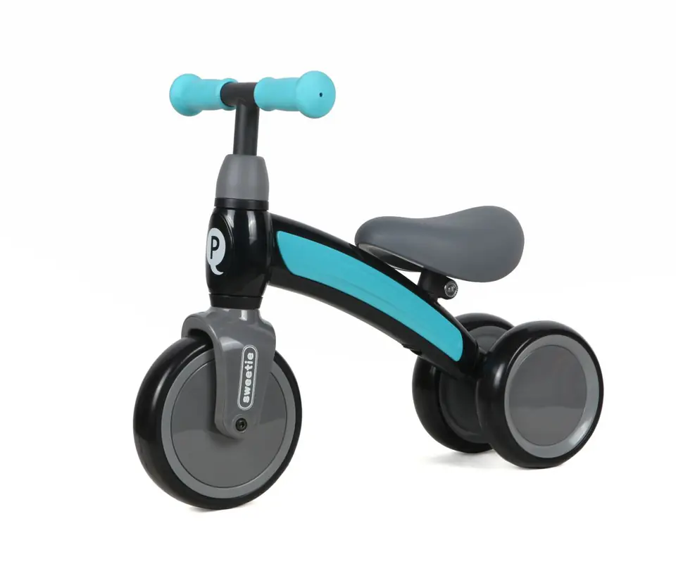 The Sweetie tricycle from the Qplay brand is an ideal proposition for children starting their adventure with a balance bike. Excellent introduction to the balance bike – the use of double wheels that guarantee stability and support driving lessons. The Sweetie bike combines the highest quality with a unique design. Sweetie has rear double wheels – there are 3 in total, they provide exceptional stability, tires made of EVA foam are quiet and allow you to use the vehicle both at home and outside. Adjustable steering wheel and saddle allows you to adjust the vehicle to the child's height. The streamlined shape reduces air resistance, which translates into higher driving speed. According to the principles of physics, the faster the vehicle / bicycle moves, the easier it is to maintain a vertical position. Soft and contoured saddle and non-slip handles ensure comfort and convenience of use. Steel frame and handlebar system – allows children up to 20 kg to use the bike. The Frame of sweetie has been enclosed with a solid flake hull of the highest quality, which at the same time adds to its original design.
