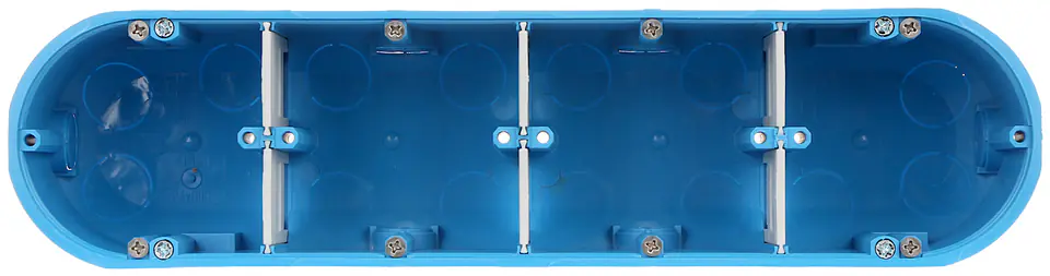 | Flush-mounted stiffened construction for hollow walls flammability rating: 960 °c class v0 4 x 4 attachment points 8 mounting screws, 4 special screws with hooks for wall mounting, 6 cable partitions - included: | Selected features: |