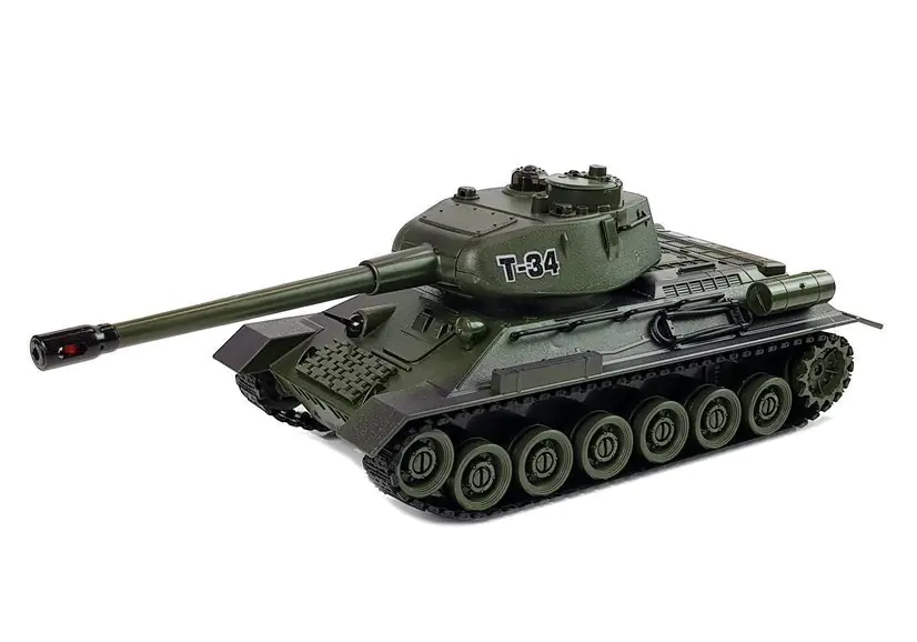 If your child is a fan of the army and military motifs, it will be the perfect gift for him. Thanks to this toy, every child can feel like a hero on a real battlefield. We can recommend a set of two remote-controlled tanks to both children and parents. The replica of the T-34 and TIGER 103 tanks in 1:28 scale is a real rarity for users of all ages. Made of solid plastic, the vehicles have a movable turret with a cannon, With the help of remote controls, you can steer them forwards and backwards and turn. The real fun begins when we find a worthy rival. After starting the War Game function, we gain the ability to complete firing with the enemy. On the tank there is an infrared transmitter and receiver, with the help of which mutual fire is carried out. The tanker's task is to avoid fire and at the same time fire safely at the enemy. Vehicles have markers for the amount of their hit points, which decrease as they receive damage. After the first hit, the left track is "damaged", preventing turning. After the second hit, the vehicle stops moving, it is only possible to steer the turret. The third hit is tantamount to losing the duel. After receiving a hit, the tank has a few seconds of resistance to damage. Tanks operate at 27Mhz.