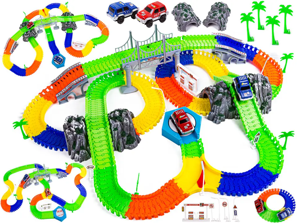 Small handles will have no problem connecting, disconnecting and laying these innovative, serpentine track elements. The connected elements can be freely twisted and twisted, which allows you to arrange an infinite number of configurations.