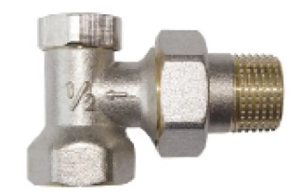 Angled return radiator valve for steel pipes with screw