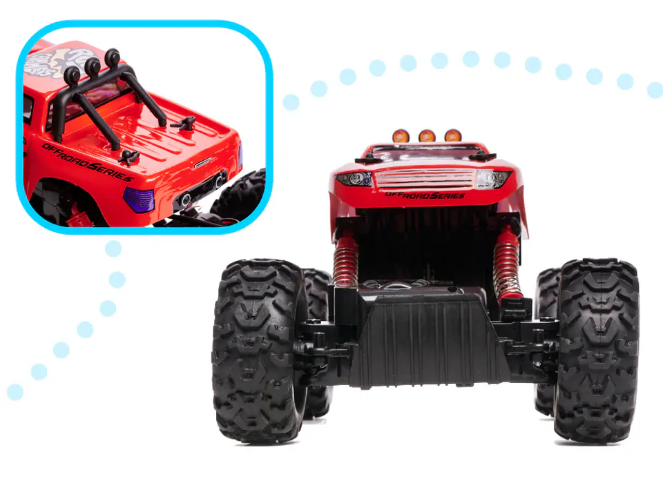 Rock Crawler King also rides on flat terrain, the range of the remote control up to 60m guarantees good fun.
