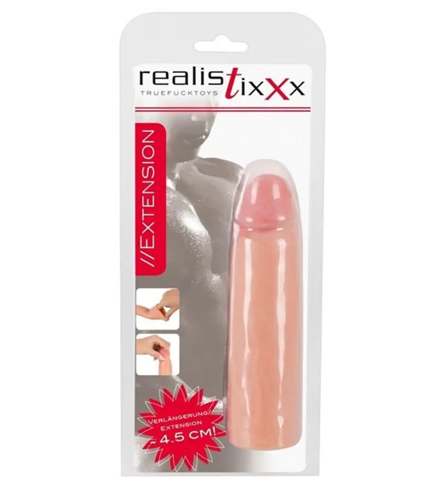 Penis overlay made of extremely soft material. It lengthens the penis by 4.5 cm. From the outside with pronounced veins - silky smooth from the inside. The sleeve is very elastic. If necessary, it can be shortened very easily.