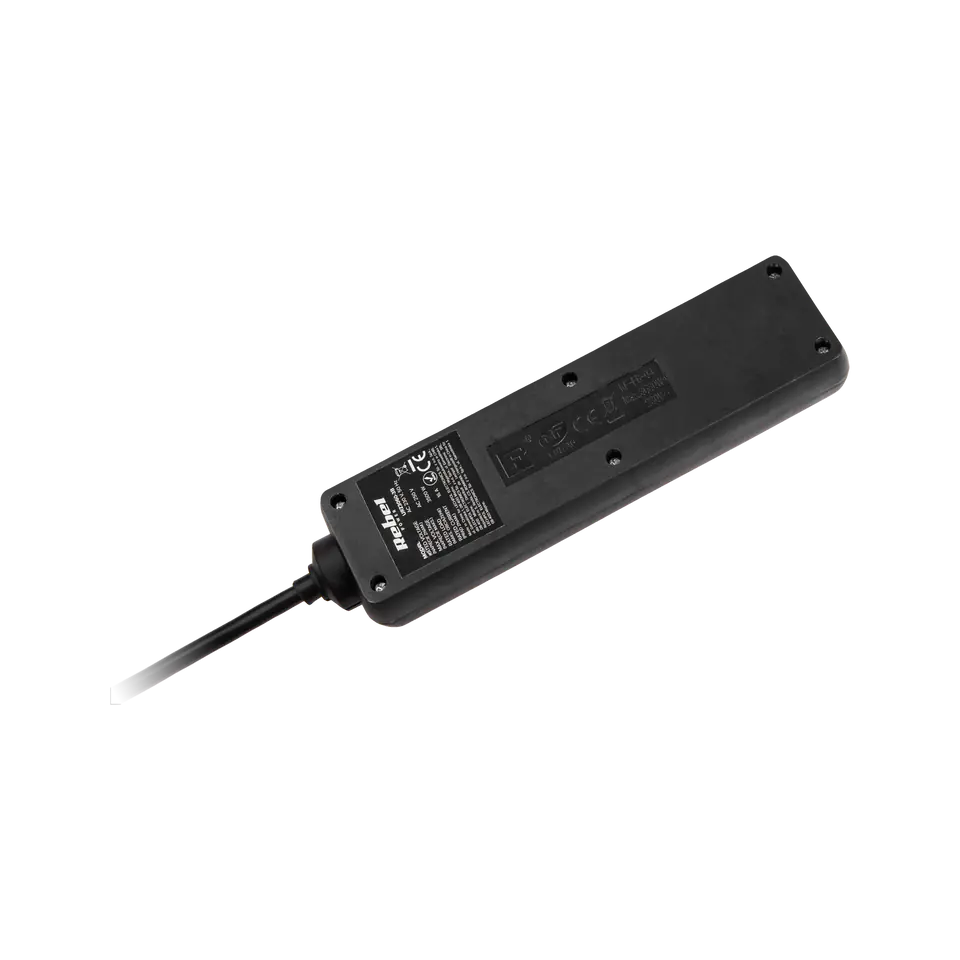 Rebel cord black 4 sockets without switch, cable 5m 3x1.5mm