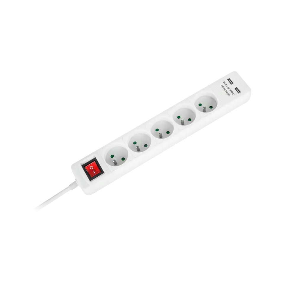 Rebel Extension Cable 5 Sockets + 2 USB Sockets, with Power Switch - 5m 1LL