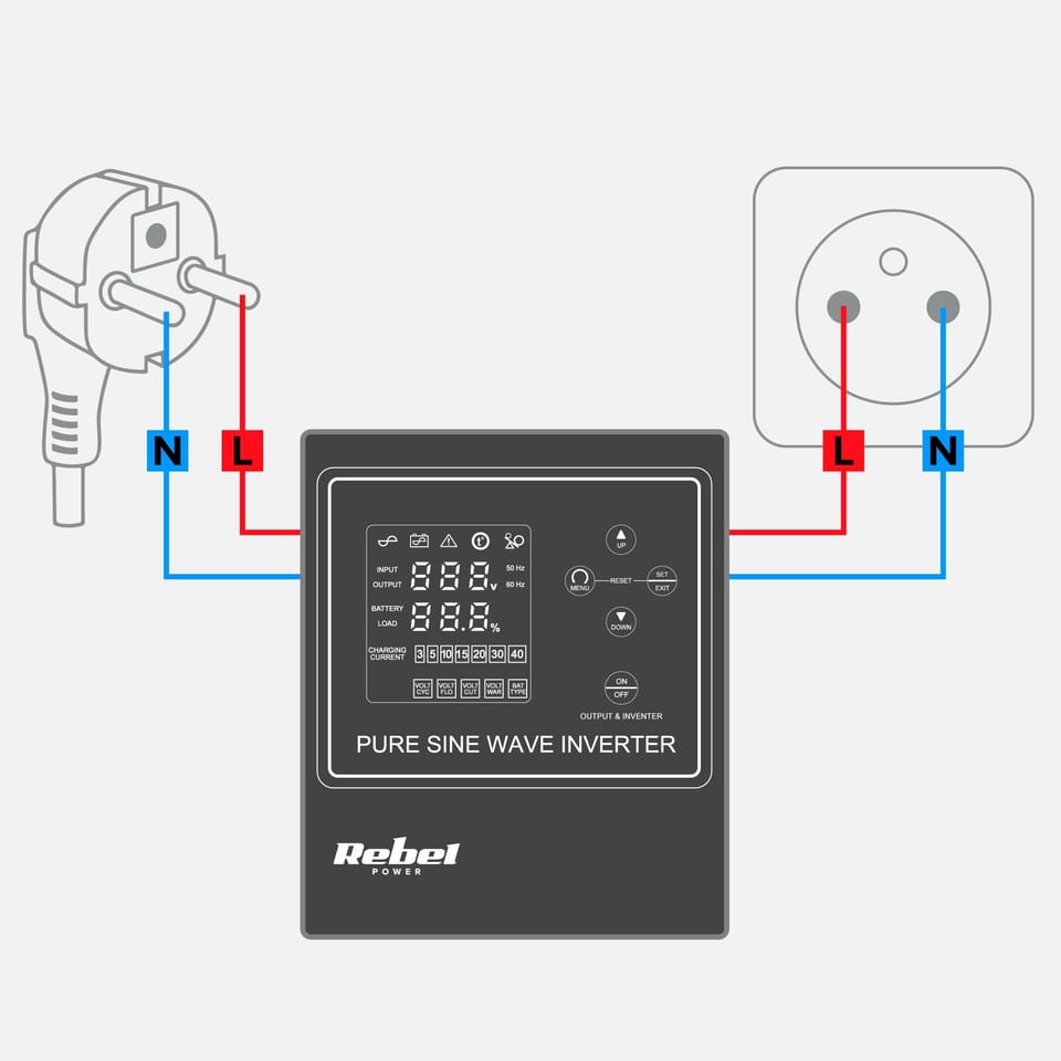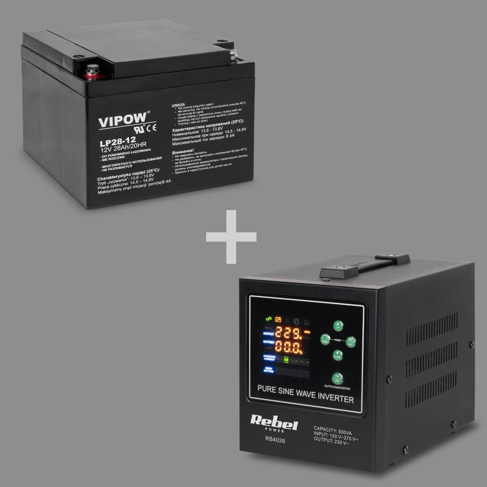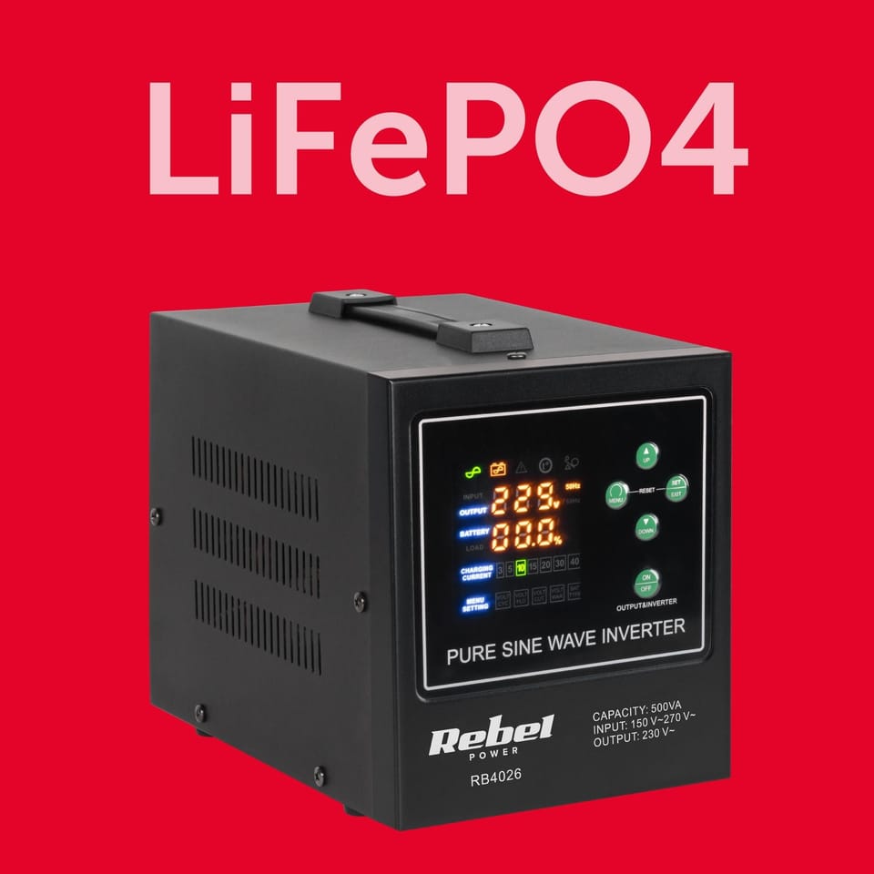 Rebel POWER-500-LFP4 - pure sine wave inverter with charging function 12V 230V 500VA/300W