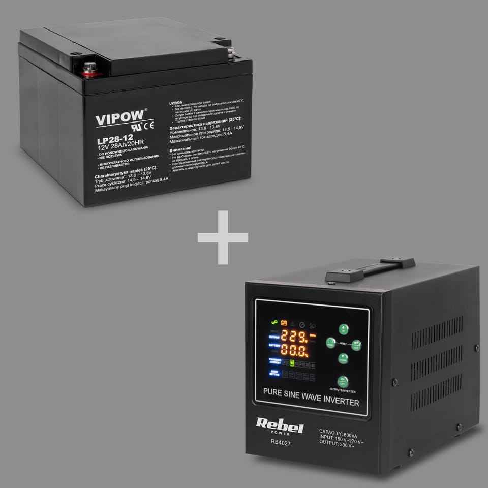 Rebel POWER-800-LFP4 - inverter with pure sine wave and charging function 12V 230V 800VA/500W