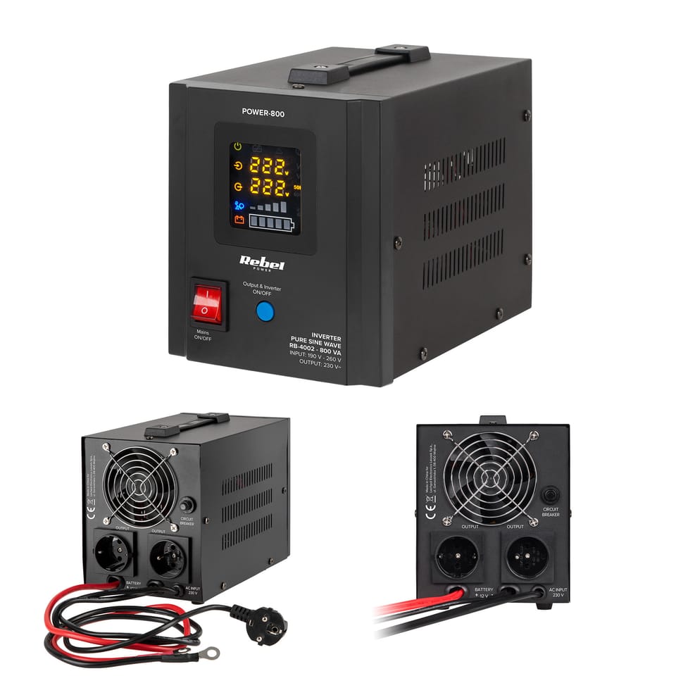 Rebel POWER-800 Uninterruptible Power Supply - converter with pure sine wave and charging function 12V 230V 800VA/500W