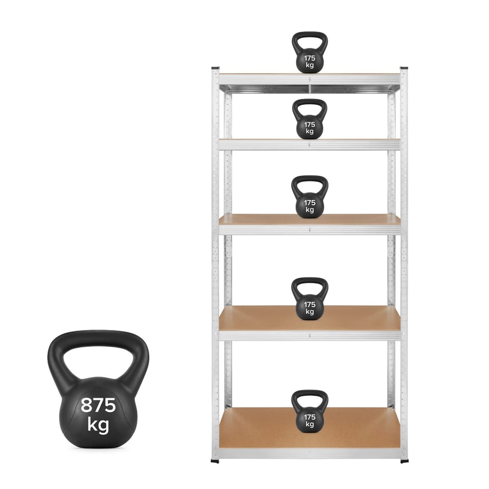 Rebel RB-1250 Metal Storage Rack Cabinet Shelves 175kg x5 180x90x40cm Galvanized Folding MDF