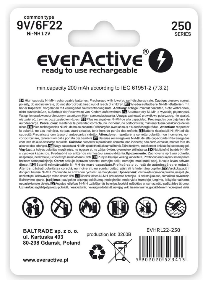 Rechargeable batteries everActive Ni-MH 6F22 9V 250 mAh Silver Line
