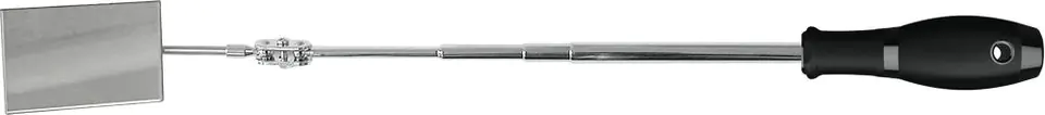 Design: steel mirror housing with metal edging and chrome telescopic tube, with comfortable plastic handle.