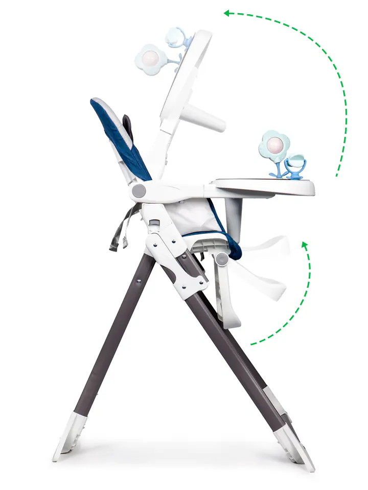 - Under the tray there is an element that blocks the child from slipping off the seat.