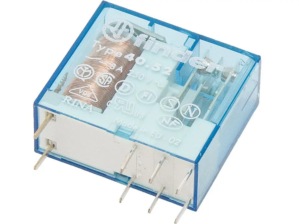 TECHNICAL DATA:- Imax: - Umax:- R coils:- Operating temperature °C:- Mechanical durability:- Number of contact pairs: - Dimensions:Relay F40.52.9.012 FINDER 8A 12V