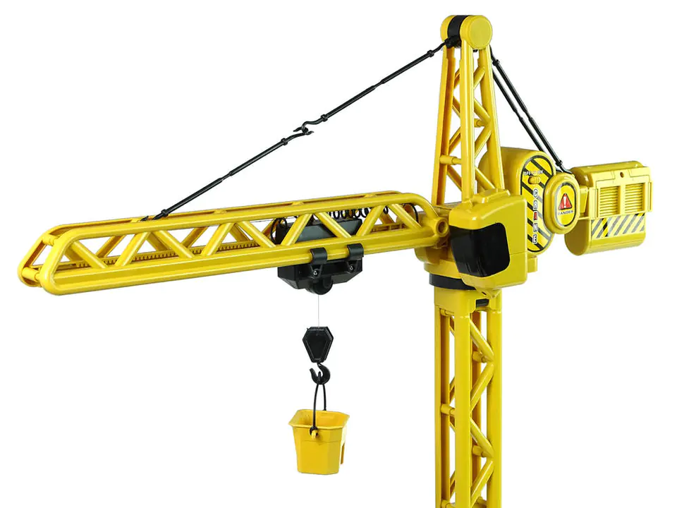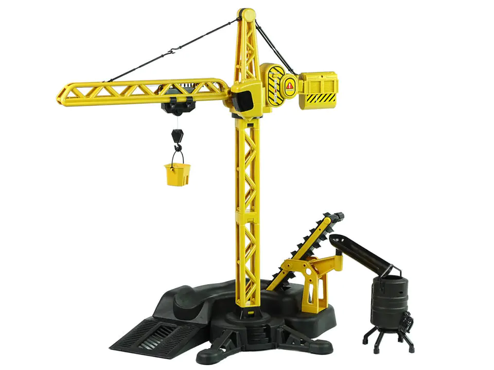 The main element of the set is a tall, yellow crane operated by a remote control. The remote control operating at the 2.4 GHz frequency allows the top of the crane to rotate, the hook to move along the arm, as well as lower the rope to carry the objects that are located. The construction of the crane is made of easily clinging elements, making it extremely easy to fold. At the end of the unfolding rope there is a small hook that allows attaching a bucket used to carry loose materials.