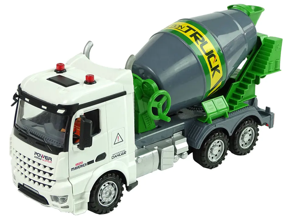 The concrete mixer and tipper is powered by two 1.5 V AA batteries included. Designed for children over 4 years of age.