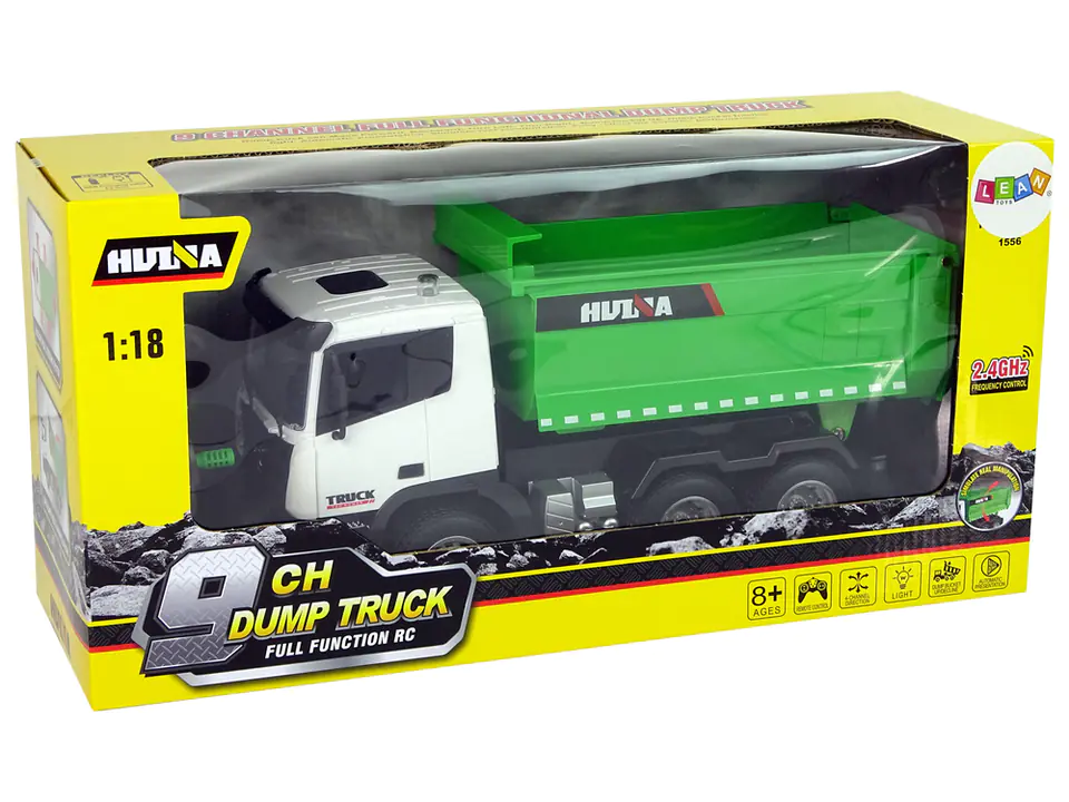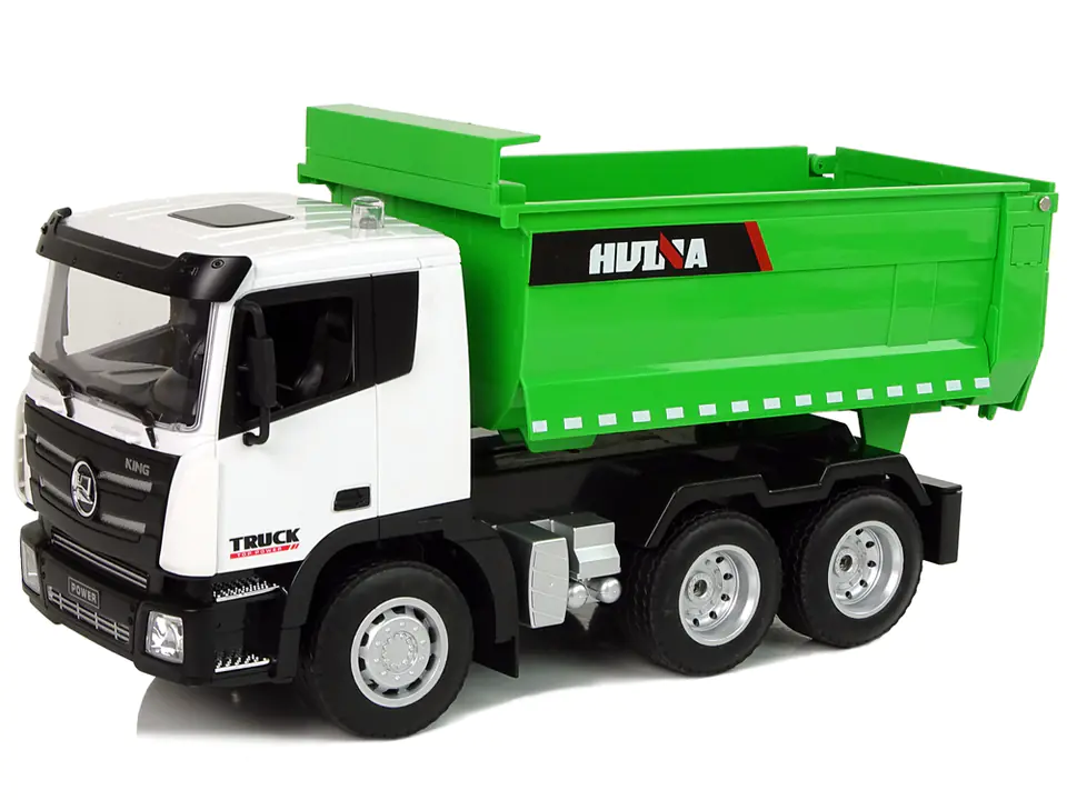 Remote Controlled Tipper 1:18 Green Huina 2.4G Lifted Trailer