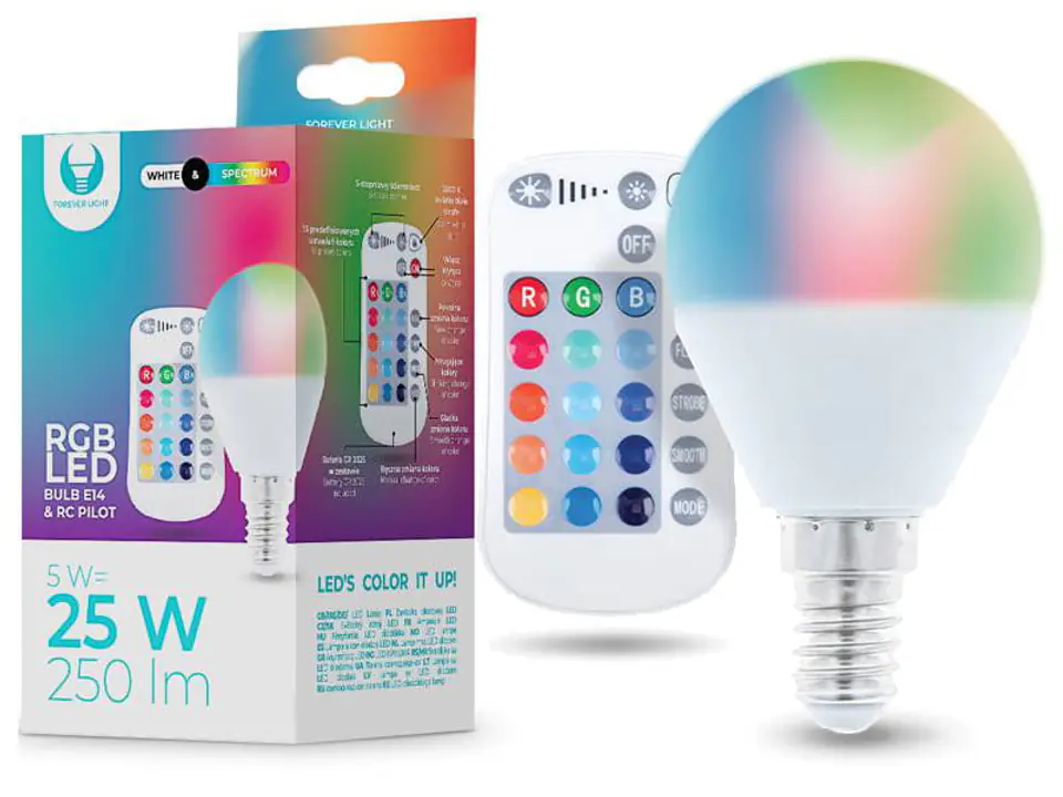 RGB led bulb with remote control 5W E14 LXL03566 multicolor