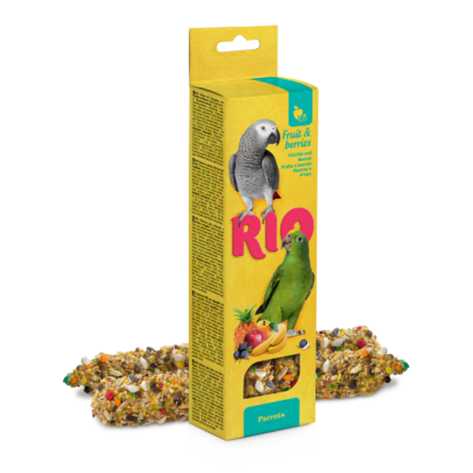 Complementary feed for parrots with fruits and berries.