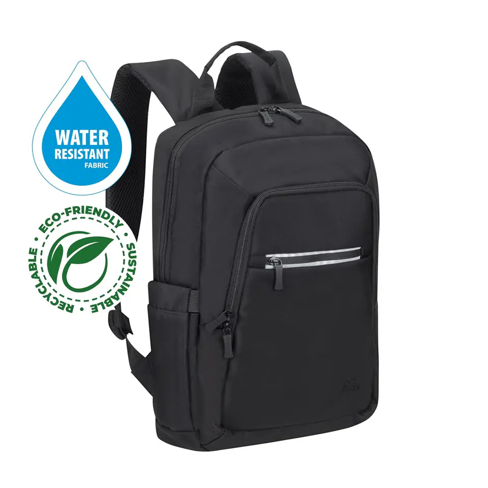 RIVACASE Alpendorf ECO 13.3"-14" laptop backpack, black, waterproof material, eco rPET, pockets for smartphone, documents, accessories, water bottle