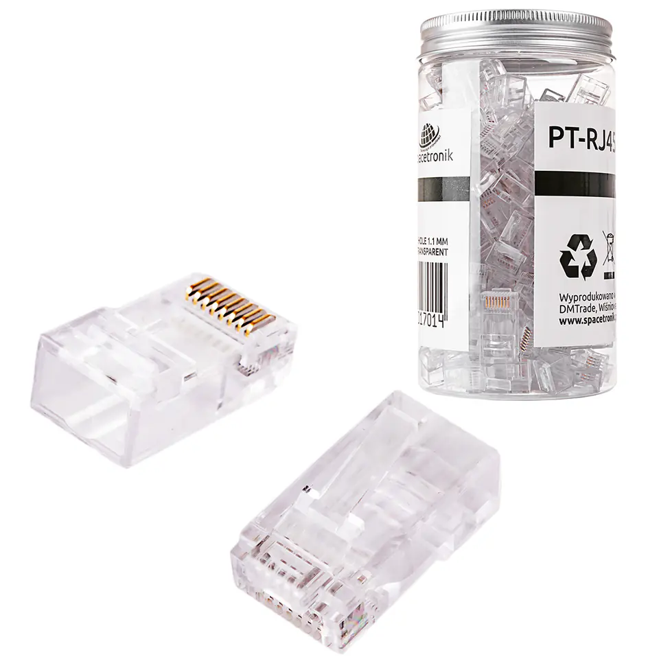 RJ45 plug CAT6 UTP Spacetronik Pass Through (transparent) - 100 pcs.