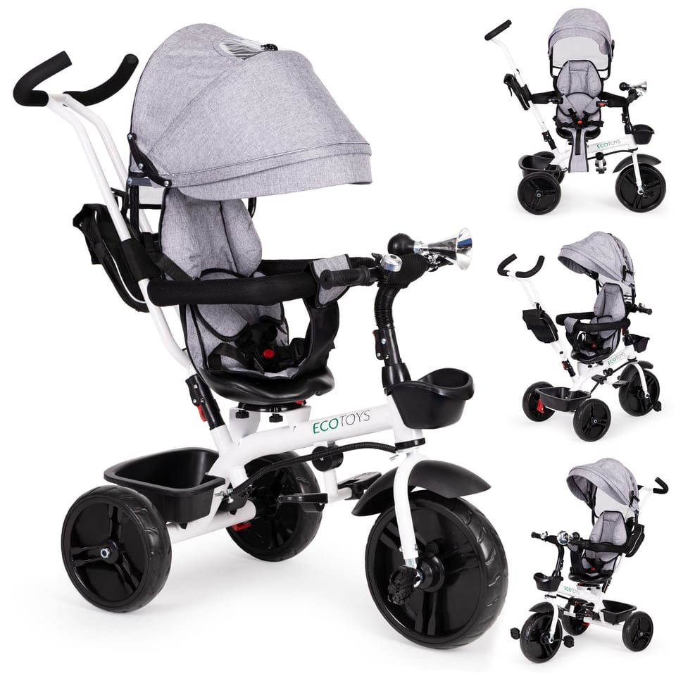 The ECOTOYS bike combines many practical solutions that will ensure your child comfortable and safe play. The bike has a soft comfortable backrest, thanks to which the toddler will sit comfortably and belts and barriers will protect him from falling out of the seat. Foldable canopy will protect against rain and sun. A specially profiled frame and a swivel seat will make it easier for the youngest children to get in.