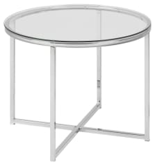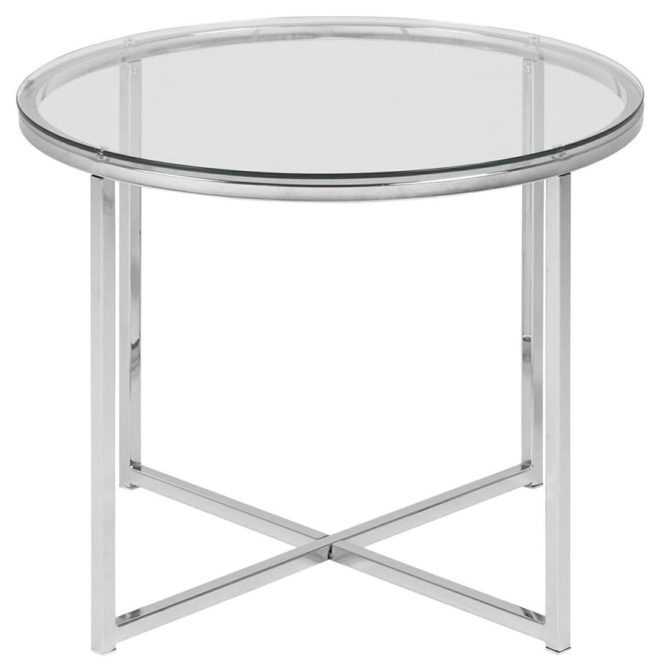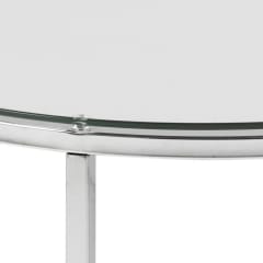 The Cross round table is made of chrome-plated metal and transparent tempered glass, which is the surface of the top. The table will perfectly find itself in industrial, loft and modern interiors bringing elegance and style. The table requires assembly, the maximum load is 30kg, not suitable for outdoor use. It will work in commercial, office, hotel and home spaces.