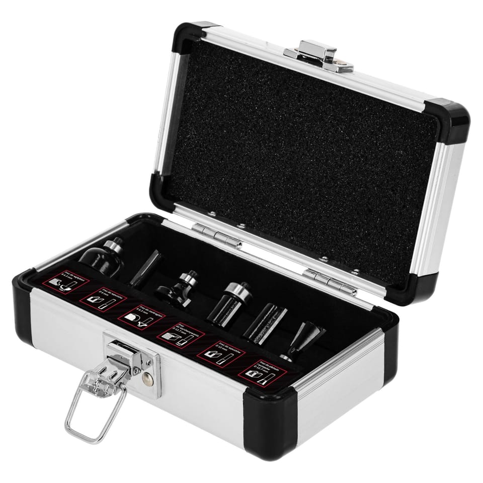 - The set includes: plunge cutter 6.3 mm,slot cutter 6 mm, end mill cutter for edgerounding 6.3 mm, cutter for smoothing 12.7mm, slot cutter 12 mm, cutter for dovetailkeys 12.7 mm
