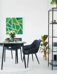 Elegance and good design is a combination that is not easy to achieve, but in the case of Rox chairs it was possible to create it. Comfortable and finely contoured seat made of eco leather with classic quilting on the backrest, creates an interesting set with metal, straight legs in black. They look very good at the table in a solid color, but also in a mixed combination. An interesting and functional addition is the ability to adjust the height of the legs, thanks to which the chair will always be properly leveled.