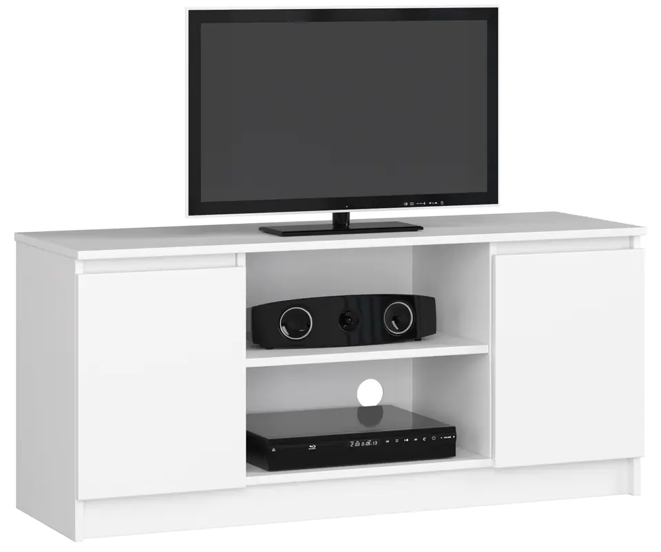White is a timeless color that will never go out of fashion. That is why it is worth betting on white furniture that deserves recognition both for its aesthetics and practical application. We present you functional TV cabinets, which were made of good quality material - scratch-resistant laminated board. Solid construction and careful workmanship resulted in the creation of a TV chest of drawers, which was equipped with open shelves and lockable cabinets for your favorite CDs, decoder / audio equipment, as well as other articles. Noteworthy is also the very favorable price of the product, which can be freely combined with other proposals maintained in white tones, which are part of the assortment prepared by us. In this way, it will be possible to create a beautiful space tailored to individual needs.