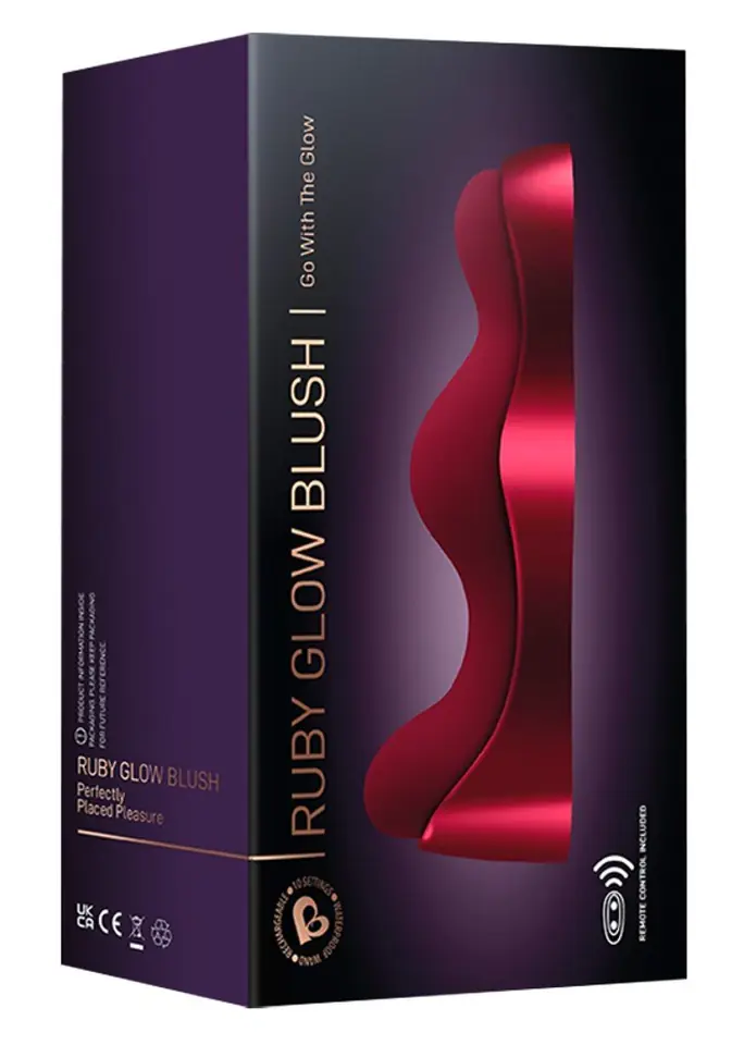 Ruby Glow Blush by Rocks-Off is a combination of a vibrator to stimulate the G-spot and seat in one device. 2 quiet, separately controlled motors - one in the upper, the other in the middle protrusion - provide 10 vibration modes each and can be conveniently controlled directly on the toy or using a practical remote control. The range of the remote control is 15 meters. As a ride-on vibrator, it intensively massages the clitoris, vulva and perineum without the need for hands thanks to anatomically matched protrusions. To do this, place Ruby Glow Blush in the charging holder / cradle - the silicone feet of the stand firmly and securely adhere to all smooth surfaces (e.g. chairs). The waterproof vibrator can be easily removed from the holder/charger and used in various ways for massage. The silky soft, perfectly curved tip without control buttons can also be conveniently inserted into the vagina and especially used for G-spot massage, or experience pleasure. In short: a universal device that leaves nothing to be desired!