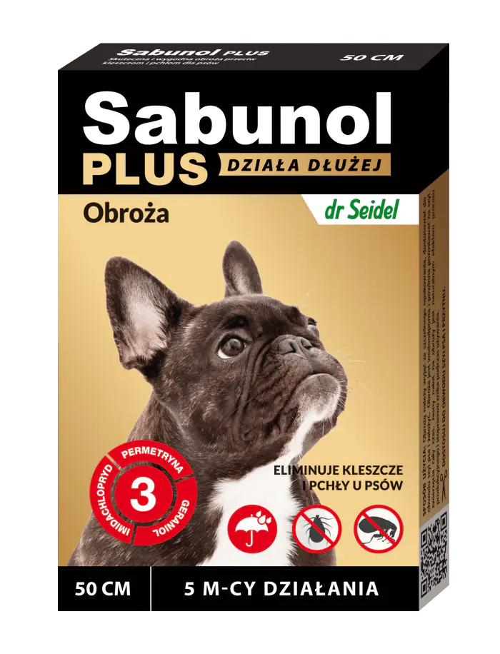 Sabunol PLUS is a modern collar against ticks and fleas for dogs. The new production technology and other form of the collar strap ensures an even and long-lasting release of three active ingredients: permethrin, imidacloprid and geraniol. Thanks to this, the collar is effective for 5 months. Tests confirm high local and general tolerance, which makes the collar safe during use. The effects of the collar are already visible after 5 hours after its insertion.