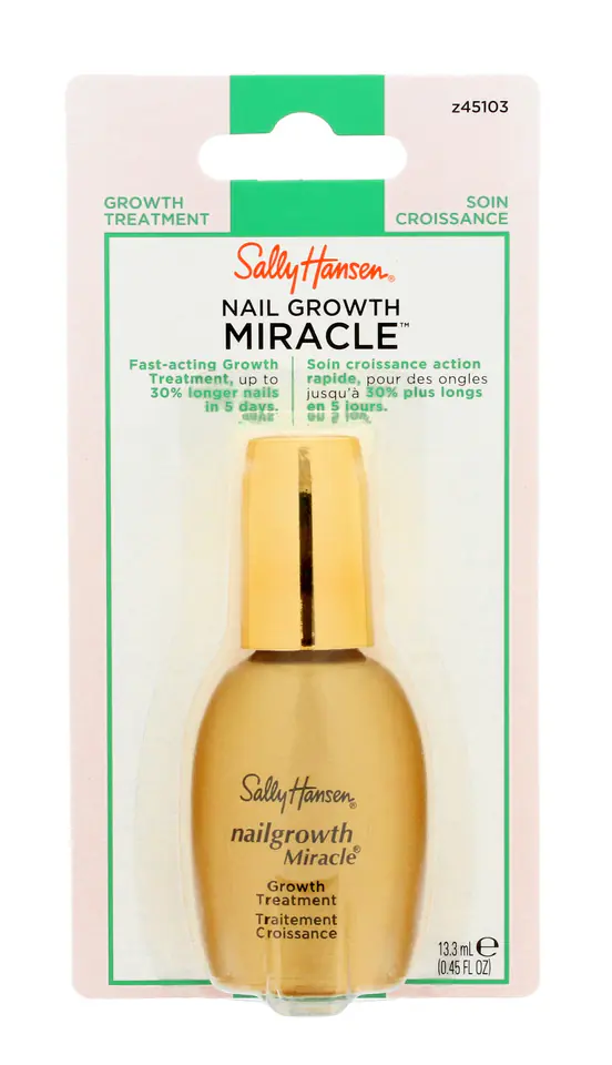 Sally knows that miracles happen thanks to scientific breakthroughs and advanced peptide technology. The advanced nutritional formula, with the content of soy protein, collagen and keratin, rebuilds the structure of the nail plate. Keratin also protects nails from splitting, cracking, and collagen and multivitamins stimulate their healthy growth.