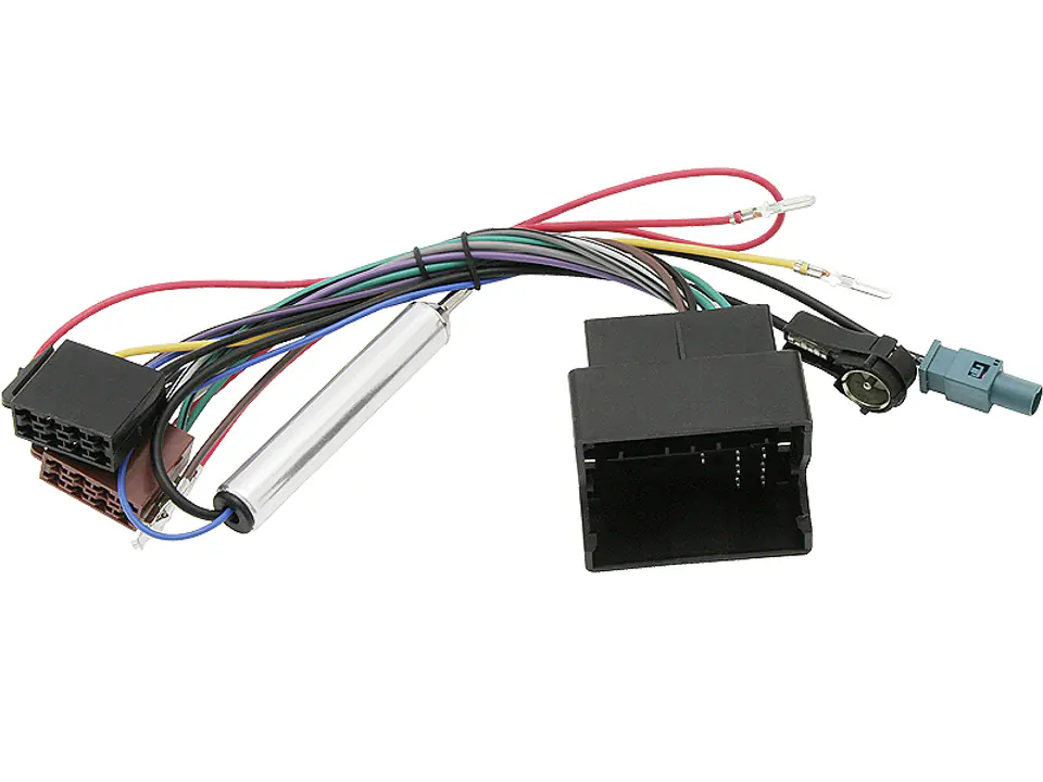 Connector with antenna separator for connecting different models of radios to the factory Fakra - ISO audio system in Audi, Seat, Skoda, VW models.