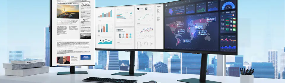 NOWOCZESNY STYL I WYGODA PRACYDzięki niemal bezramkowej konstrukcji możesz w pełni skupić się na pracy. Ustawisz obok siebie dwa monitory i bez rozpraszania uwagi będziesz przełączać się między aplikacjami, wiadomościami e-mail czy dokumentami.