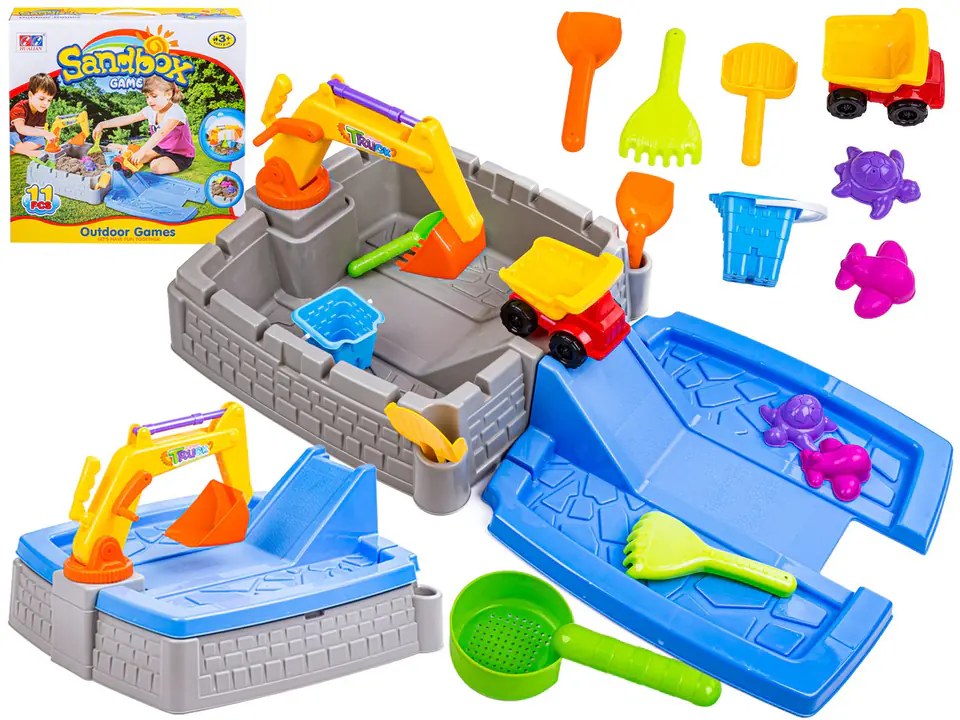 For the sake of the youngest, the sandbox and accessories are made of high quality plastic, resistant to cracking. The sandbox is stable and does not have any sharp edges or elements with which the child could cut himself.