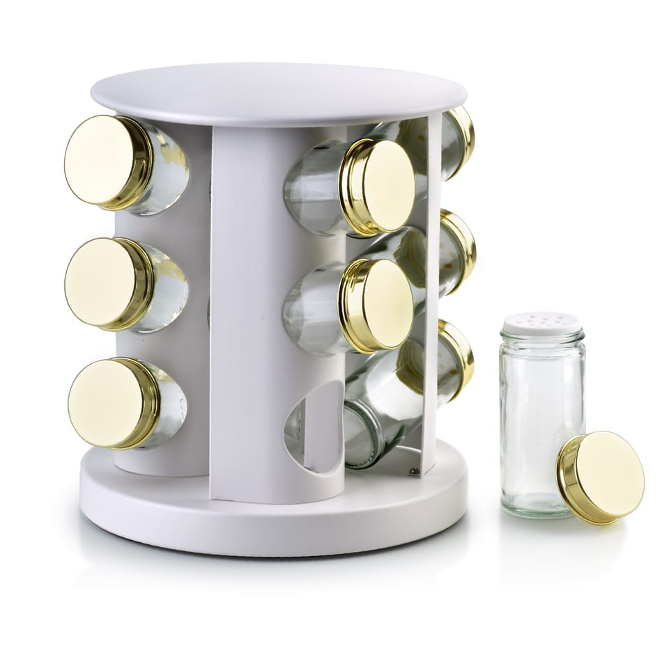 A set of 12 glass spices on a metal stand from the SANDY WHITE series by COOKINI by MONDEX.