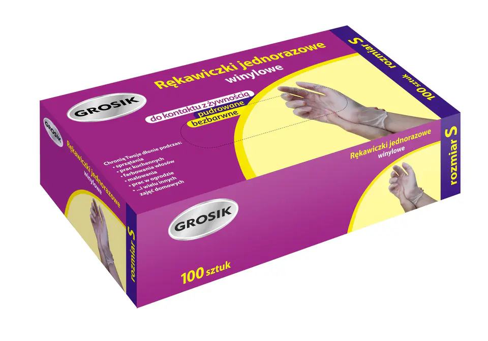 Vinyl gloves are an ideal solution for people allergic to latex. Vinyl is an odorless material, more "plastic" to the touch. They are used in hair dyeing, painting, daily cleaning work, but also in cleaning silver or polishing shoes.