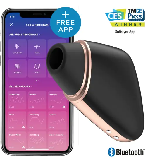 The app connects to your device via Bluetooth or the Internet and controls the clitoral stimulator, delivering exciting vibrations in various combinations. It also serves as a remote control and can use your mobile phone's microphone to convert ambient noise into vibrations or upload entire playlists from Spotify as thrilling clitoris rhythms. Satisfyer Connect complies with the strict requirements of the European Data Protection Act . So only you have access to it and you can give free rein to your fantasy without any worries. Of course, you can also hand over the reins to your partner or use the app to control other users' Satisfyer devices via video chat to turn up the atmosphere even more. This extraordinary stimulator will provide you with a completely new exciting experience – whether solo, with a partner or on video chat.