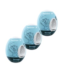 Satisfyer Masturbator Eggs, thanks to their skin-like texture, will please you, stimulating both the shaft of the penis and its tip. The varied inner shapes will delight you with an extremely realistic experience, and thanks to the innovative cyber leather, you do not need to use lubricant. • Made of smooth, hydroactive TPE plastic that can be moistened with a small amount of water or saliva. • Ideal travel companion thanks to its compact size• Stimulation whole penis• Stimulating structure• Designed for single use onlySatisfyer Savage Masturbator : practical device for masturbation on the goWith the Satisfyer Savage masturbation egg you will always breathe a sigh of relief. The masturbation egg is designed for single use: the shape of the egg makes it discreet and ideal to take on a trip. The egg is made of innovative hydroactive TPE material that can be moistened with a small amount of water or saliva, providing a smooth surface for more pleasure. Travel delights have never been so easy – thanks to the innovative material, no additional moisturizer is needed. The wavy structure provides additional, stimulating pleasure.
