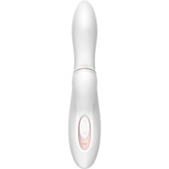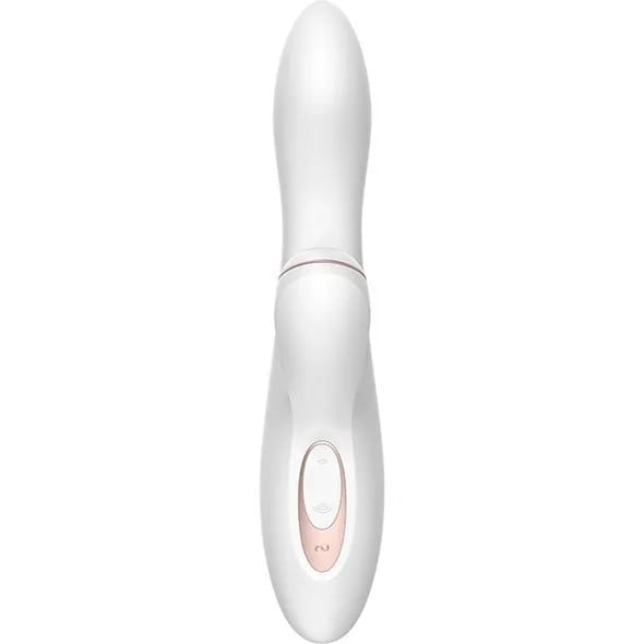 Time for the ultimate, in sensation this special Rabbit is your muse, playing you with orgasms for your diary of superlatives. In the typical style of the Satisfyer family, it stimulates your love bead touch-free through pressure waves, providing deeper stimulation which leads to multiple orgasms. This talent alone has conjured up insatiable smiles on women’s faces all over the world. But every cake deserves icing, and in accordance with this philosophy, the Satisfyer Pro G-Spot Rabbit was developed. It expands the unique feeling of clitoral pressure wave stimulation to include an additional G-spot massage. It could well be worth taking a few days off work and spending them in bed, together with this innovative pleasure companion. Bring your libido to a peak! The ergonomic shape and silky-soft silicone cover of the Pro G-Spot ensure that it sits comfortably in your hand. Once the tempting design has seduced you, it slides smoothly inside you. The flexible, elegantly curved shaft clings skilfully to your curves and seeks your G-spot with a voluminous tip containing a powerful motor. A pleasurable bouquet of 3 vibration intensities and 7 rhythms provides you with deep vaginal vibes. Meanwhile, the clitoral stimulator caresses your love bead with sensual pressure wave stimulation. The round silicone attachment encircles your clitoris as you are brought to a touch-free climax. This gives you a sensation similar to that of oral stimulation: rapid change between suction and pressure is available in 11 intensities - simply use the intuitive controls to switch up and down between settings. A third button controls the vibration setting, enabling countless seductive combinations of settings. The Satisfyer Pro G-Spot is also extremely quiet, although it may well coax a few noises out of you! The waterproof finish means that it is also the ideal bathing companion, inviting you to enjoy sensual pleasures in the shower or bath. Material and care The exchangeable, skin-friendly silicone attachment for this Satisfyer model is handy and round. The frictionless surface of the ring snugly and artfully encircles your love bead. Intensify your pleasure sensations even further by using a water-based lubricant. The integrated rechargeable battery in the Satisfyer Pro G-Spot Rabbit offers environmentally friendly recharging. If you want to charge your toy via a mains plug, the magnetic USB cable (included) can be supplemented with a standard 5V plug. The skin-friendly silicone is extremely easy to clean. Simply wash the toy with lukewarm water and a little soap. The attachment is also easily removable. Finish off with a couple of sprays of disinfectant toy cleaner to ensure especially thorough hygiene. - Pressure waves and vibration - Separately controllable settings - 2 powerful motors. Waterproof - Rechargeable, USB charging cable included