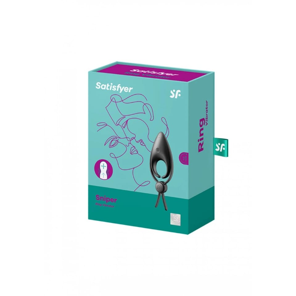 The powerful motor transmits intense vibration rhythms throughout the sexual wellness deviceIdeal for couplesMade of super soft, skin-friendly medical-grade silicone that is smooth to the touch and extremely hygienic Greater stamina through blood retentionTightness individually adjustable Body-friendly siliconeWaterproof IPX7 Whisper modeEasy to clean Lithium-ion batteryUSB magnetic charging cable included Vibrating cock ring: Even more lovemaking fun with the Satisfyer SniperWith the Satisfyer Sniper you can enjoy more stamina and longer-lasting and more powerful erections during lovemaking: Two loops, one of which can be individually adjusted to fit snugly, ensure a greater blood retention effect. The adjustable cock ring with a tapering clitoral stimulator also pampers both partners with intensive vibrations during lovemaking. The 12 vibration programs can be easily controlled via the One Touch button and range from gentle to intense.Due to its ease of use and size-adjustable loop, the Satisfyer Sniper is particularly suitable for beginners and anyone who is looking for a perfectly fitting cock ring.